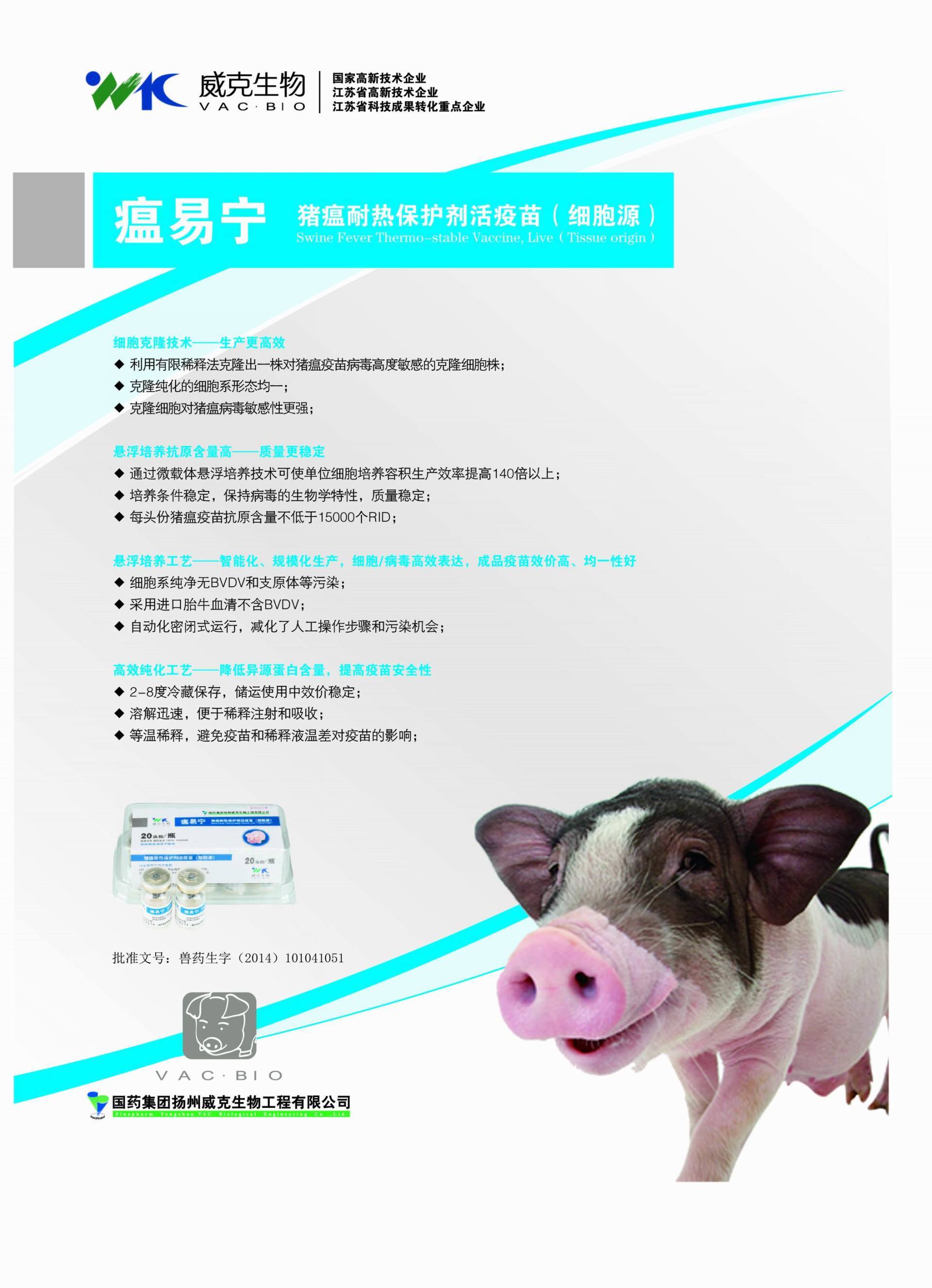 通用名 高效豬瘟耐熱保護劑活疫苗(細胞源)