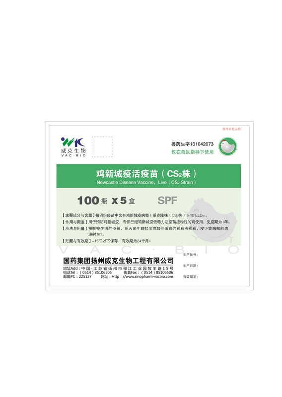 通用名稱:雞新城疫活疫苗(CS2株)